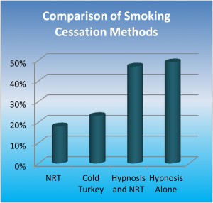 It states unequivocally that Hypnosis is the number one most effective method for permanently stopping smoking – 3 times more effective than NRT’s (Nicotine Replacement Therapies) such as the patch or gum, and 15 times more effective than quitting cold turkey.